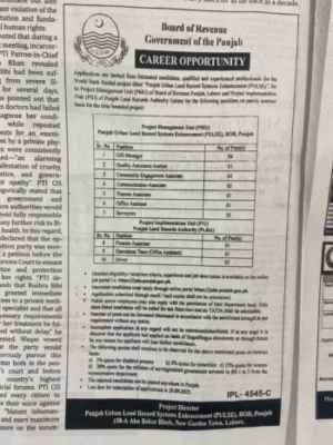 Punjab Board of Revenue Jobs 2025 is a great career opportunity that has my experience in the field of GIS, Finance, IT, Communication or Community Services. You are on contract for project-based positions, but ideal for growth and exposure. Don’t miss the deadline and apply on time.