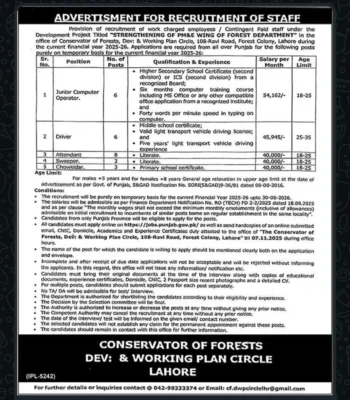 Apply online on the Punjab Job Portal and send the hard copy to the Conservator’s Office.