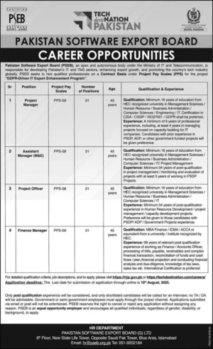 If you are seeking a job in the IT or project management sector in Pakistan, the new job announcement by the Pakistan Software Export Board (PSEB) presents a great opportunity for you. For the “GDPR-Driven IT Export Enhancement Program,” this independent organization within the Ministry of IT is employing qualified experts on a contract basis.