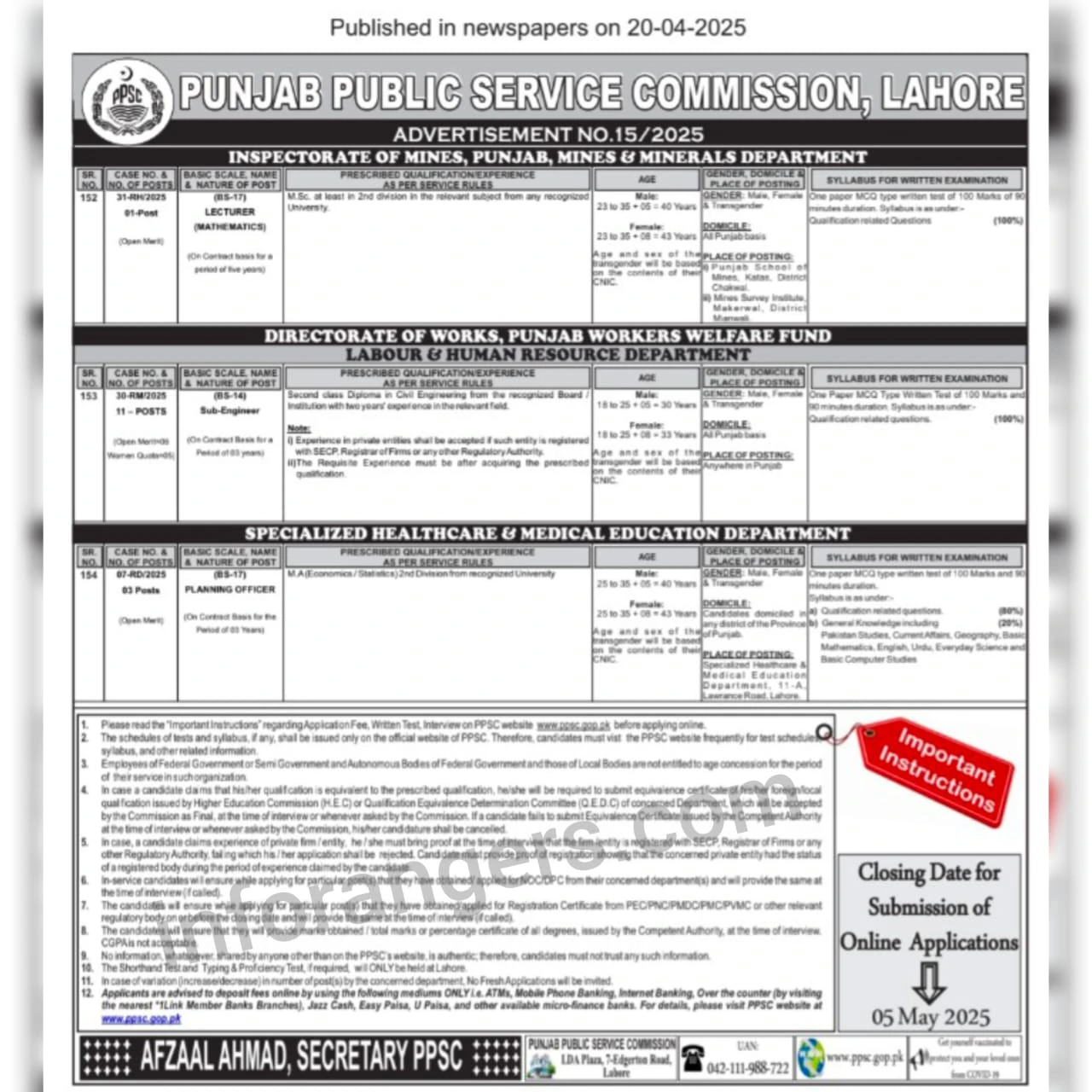 Latest Govt Jobs in Pakistan – PPSC jobs Punjab Full Time