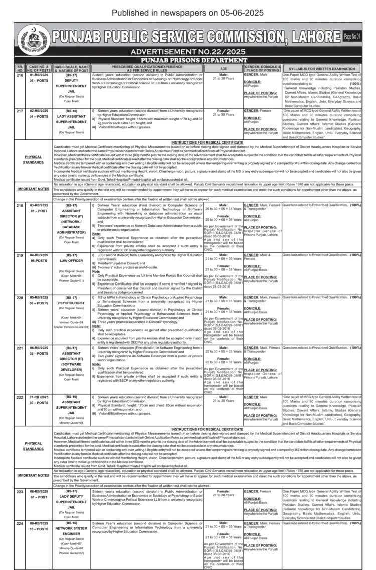 If you are looking for Punjab Jail Police Jobs, then you are at the right place. Punjab Public Service Commission has announced several vacancies for the new year, which include Deputy Superintendent Jail, Assistant Director IT, Psychologist, Law Officer and many other vacancies. These Prison jobs are perfect for those who want to make their career in the government sector.