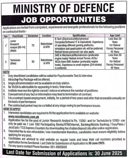Www Recruitment MOD gov pk Jobs online apply Contract Base